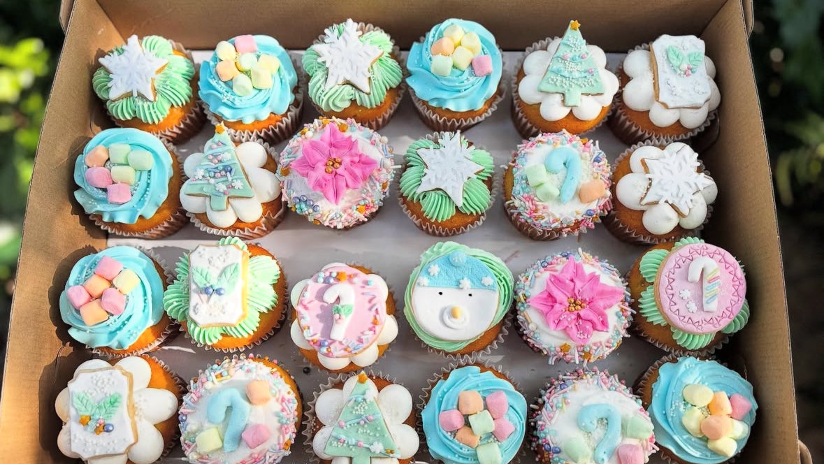 Our Mini Cake Box holds 8 delicious cupcakes, each topped with creamy...